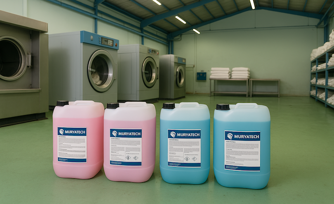 Muryatech, menyediakan chemical laundry berkualitas tinggi, tersertifikasi, dan ekonomis untuk mendukung operasional industri laundry profesional, termasuk hotel dan rumah sakit